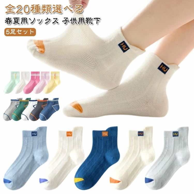 送料無料 キッズソックス 5足セット 春夏くつ下 ボーイズ靴下 ガールズ靴下