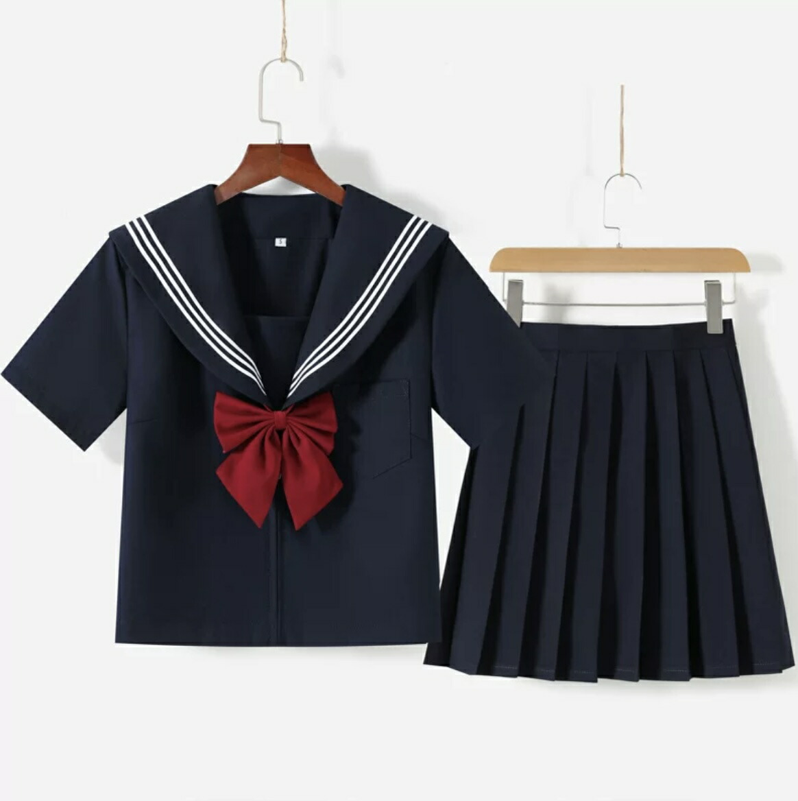 女子高セーラー服コスプレ 可愛い 制服 ネイビー半袖 シャツスカート蝶結び3点セット 学生服 女子高生 アニメ アイドル 大きいサイズ 男女兼用 レディース 女装 コスチューム 衣装 メンズ