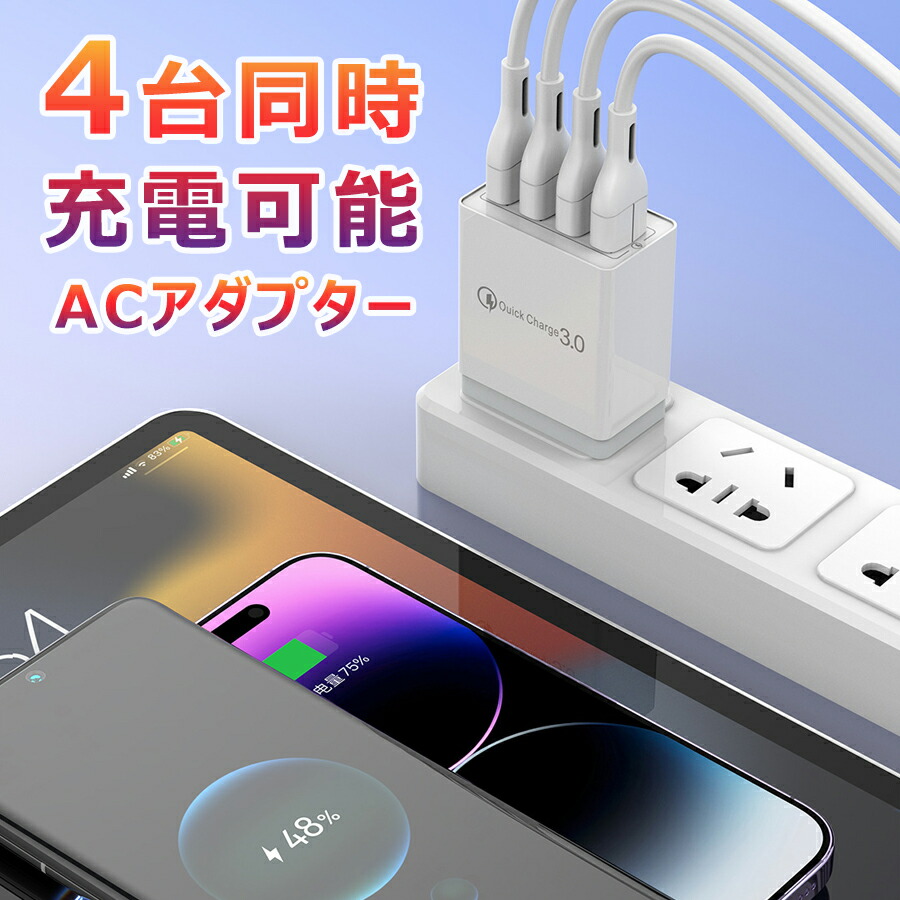 \超目玉商品/ACアダプター USB 充電器 4ポート スマホ充電器 コンセン QC3.0搭載 チャージャー 急速充電 同時充電 iPhone Type-c Galaxy Xperia Android