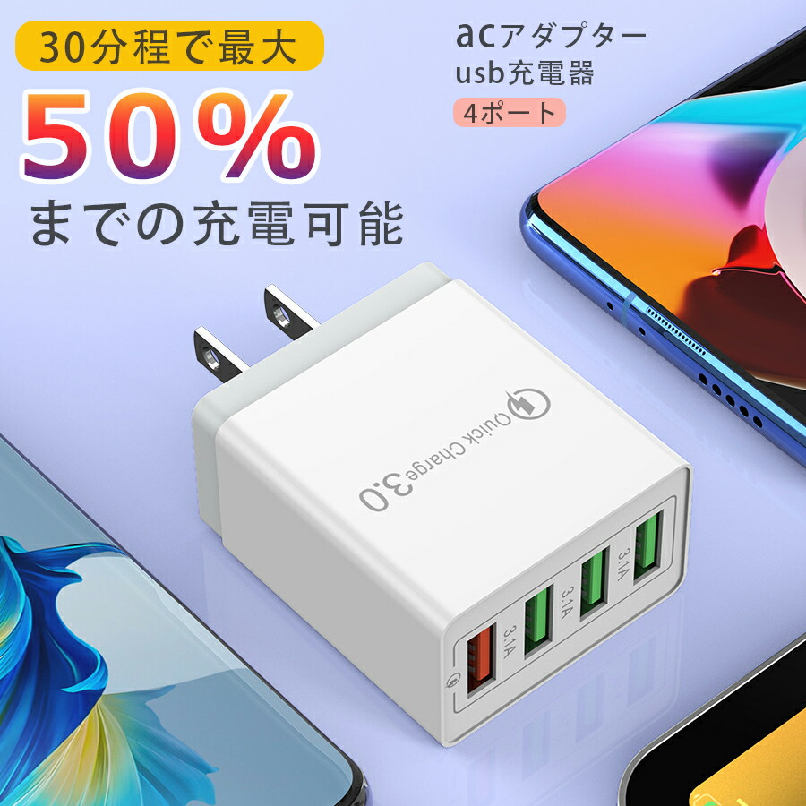 \超目玉商品/USB 急速充電器 USB コンセント usb充電器 4ポート 充電器 Quick Charge 3.0 高速充電 ACアダプター usbアダプター アイフォン QC3.0 スマホ充電器