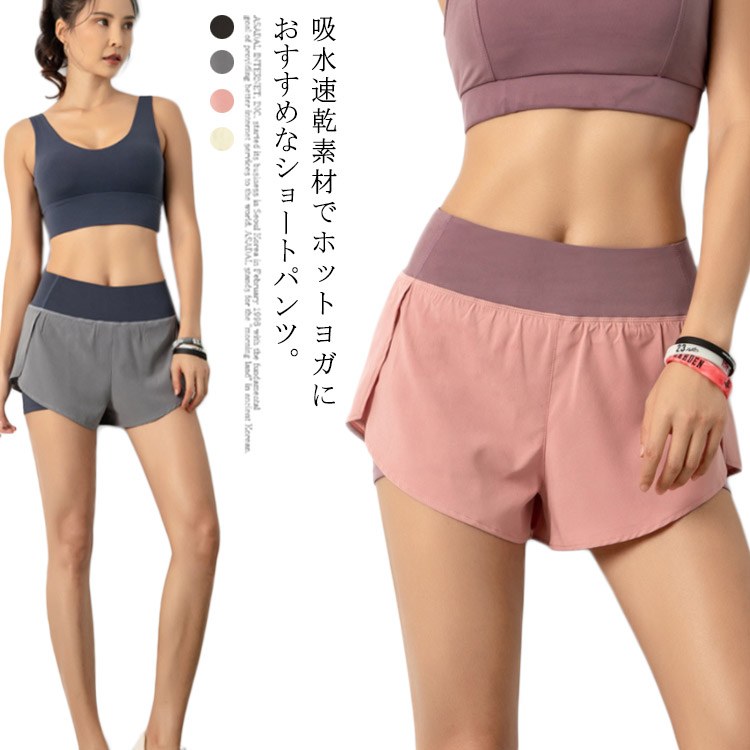 ハイウエスト スポーツウェア 短パン ショートパンツ レディース 吸汗 速乾 アウトドア ランニング テニス ゴルフ インナーパンツ付き ヨガ 運動 イージーパンツ トレーニング カジュアル 通気性