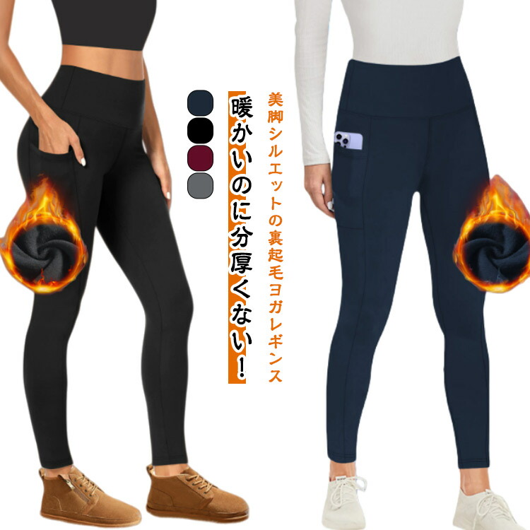 ヨガレギンス ヨガパンツ 裏起毛 あったか ウェア ヨガウェア パンツ レギンス スポーツウェア 無地 ゆったり スパッツ 10分丈 冬 秋 スポーツレギンス 美脚 フィットネス 便利なポケット付き