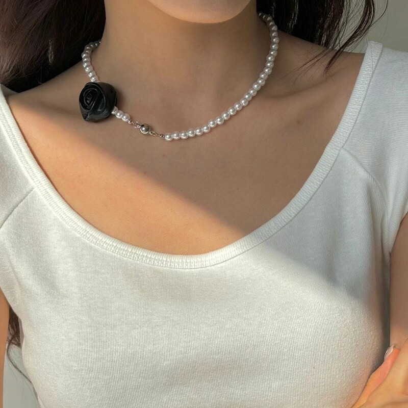 フラワーパールチョーカー ネックレス ローズチョーカー パーティー イベント おしゃれ ネックアクセサリー レトロ