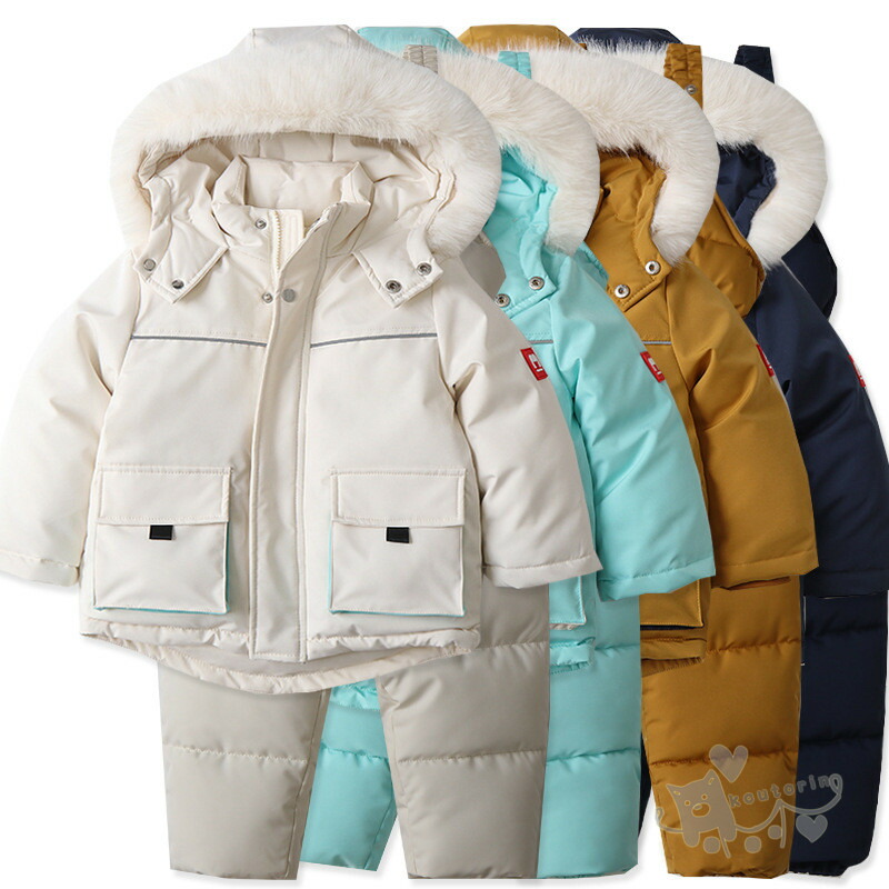 スノーウェア スキーウェア ジャケット ジャンプスーツ ダウンアウター 2点セット ロンパース つなぎ オールインワン サロペット スノーボードウェア あったかい 男の子 子供 ベビー用 ユニ 女の子