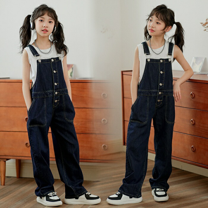 デニム オーバーオール 女の子 子供服 キッズ デニムパンツ Tシャツ ジーンズ 2点セット おしゃれ 可愛い レトロ サロペット オールインワン ワイドパンツ ブルー 110 12 子ども服