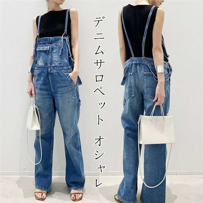 【送料無料 】デニム サロペット オシャレ オーバーオール 裾ス