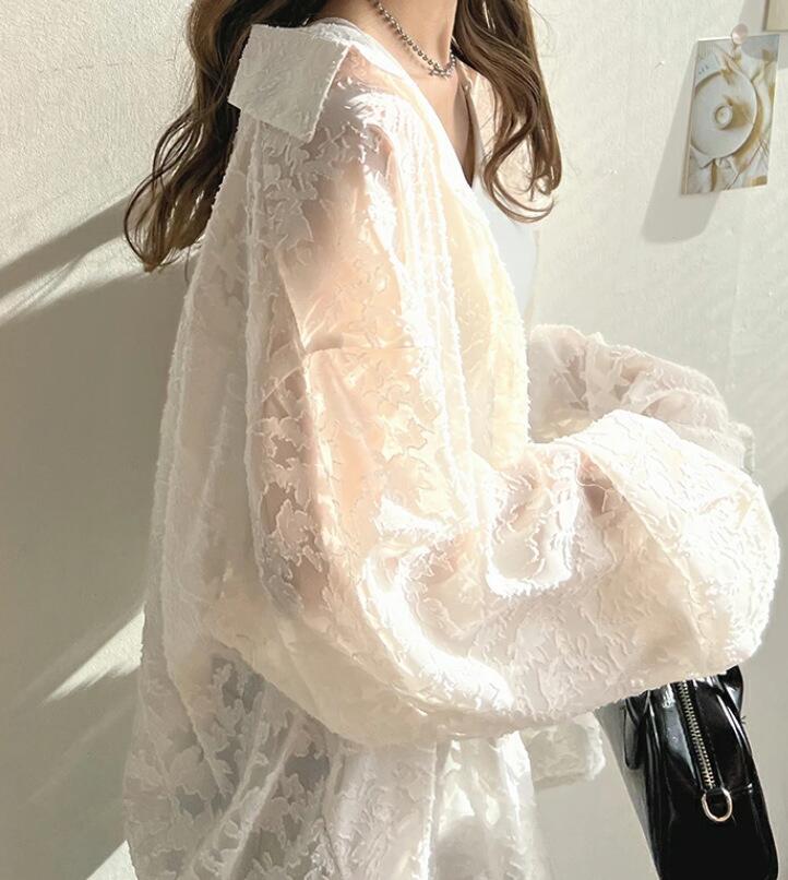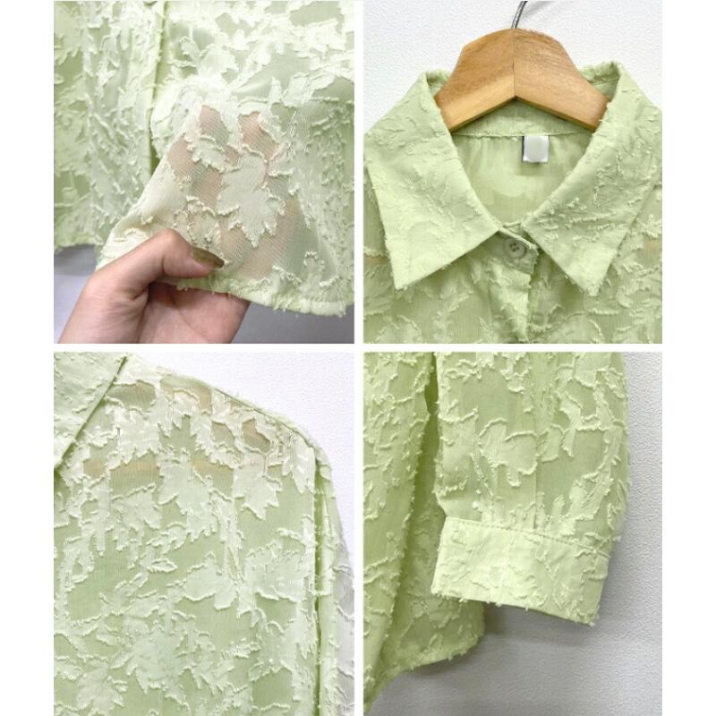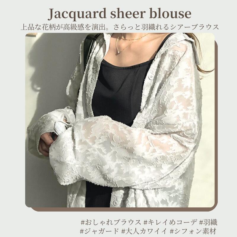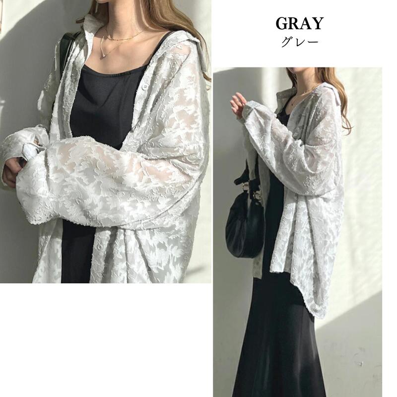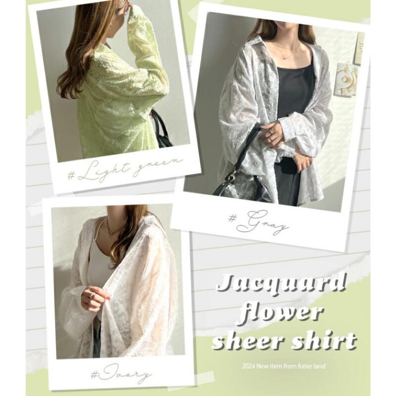 ジャカード フラワー シアーシャツ シ レディースファッション 期間限定割引クーポン ホワイト グレー ライトグリーン