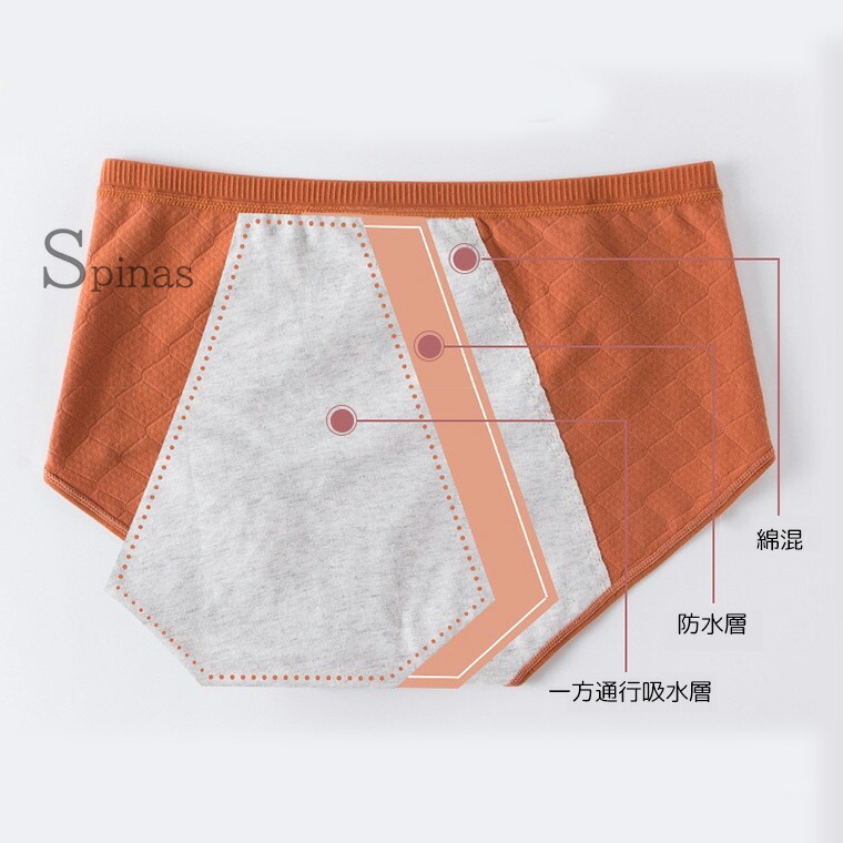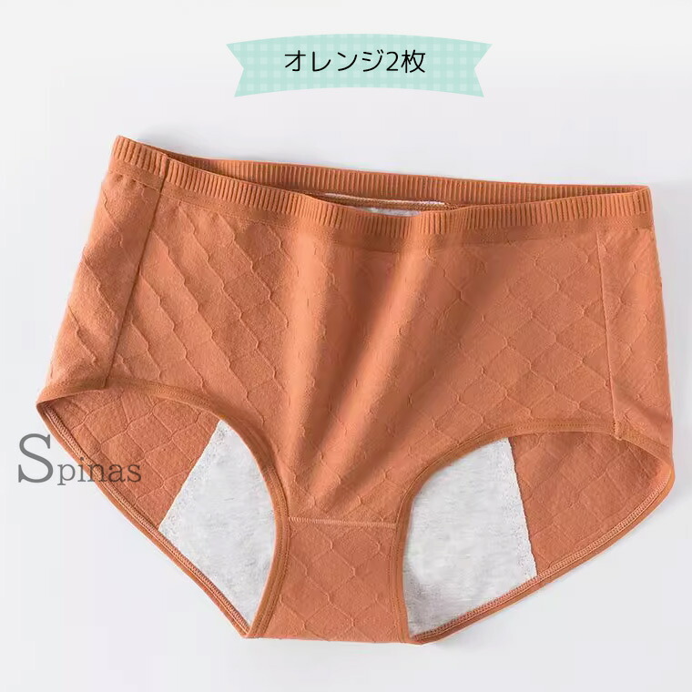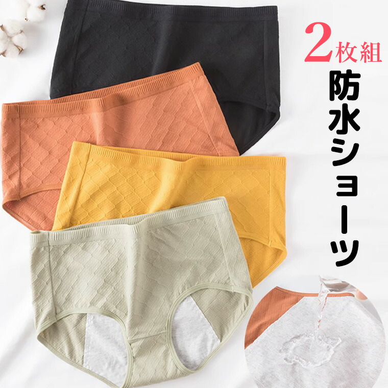 やわらかコットン 防水ショーツ レディ M L XL オレンジ2枚 グリーン2枚 ブルー2枚 イエロー2枚 グレー2枚 ブラック2枚