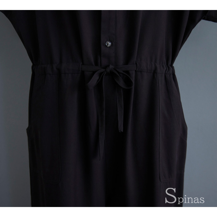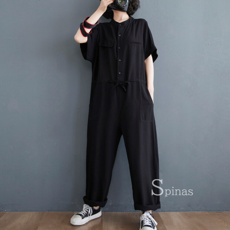 ノーカラーで首回りすっきり ドルマン袖 オールインワン サロペット 新作