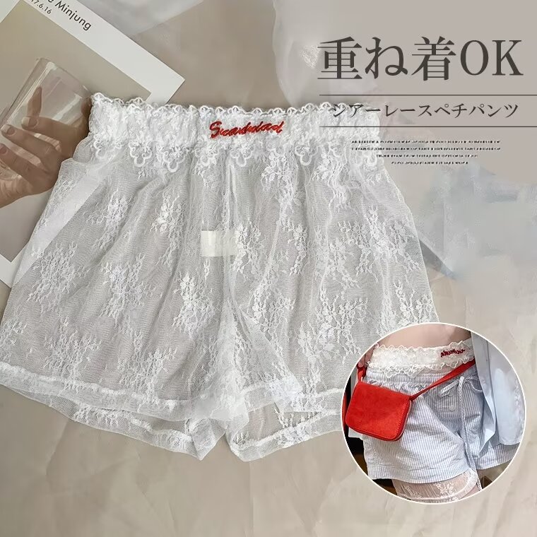ウエスト部分を見せて可愛い!インナーパンツ 見せパン ペチコート ペチパンツ シアーレース 薄手 透け防止 肌着 蒸れない ウエストゴム レイヤード ショートパンツ レディース レース ショーパン 可愛い オシャレ 総レース