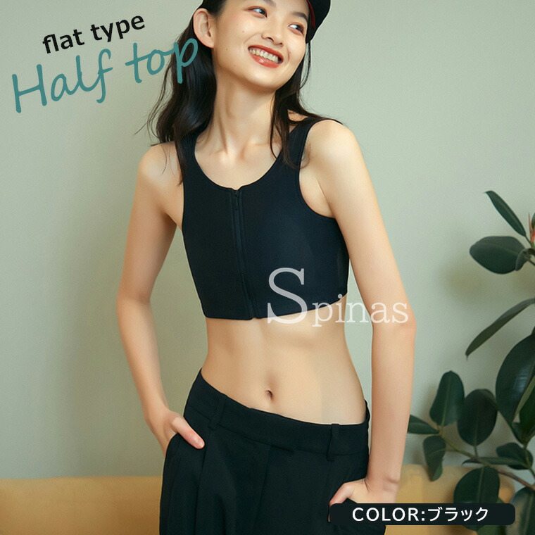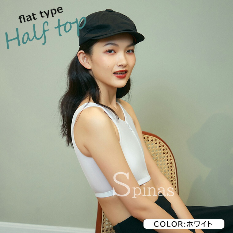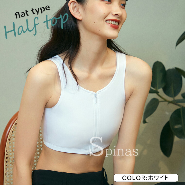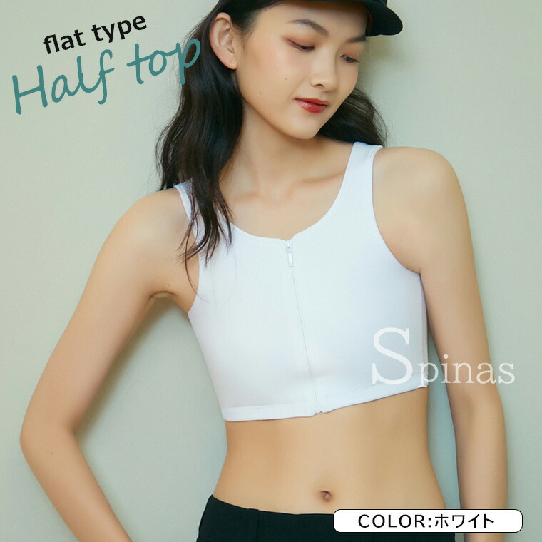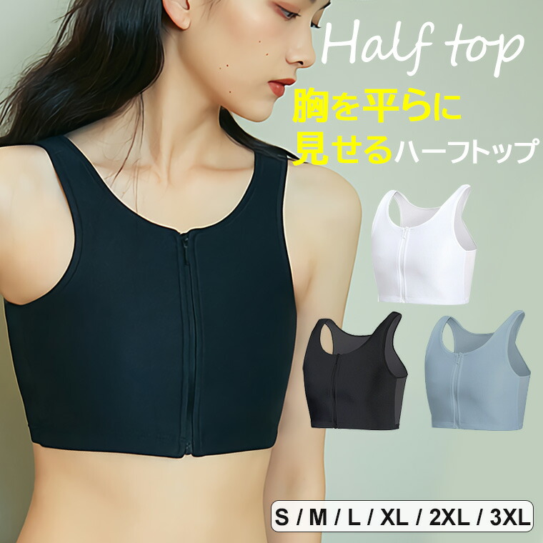 大きな胸を平らに見せるハーフトップ♪ ホワイト ブラック グレー S M L XL 2XL 3XL