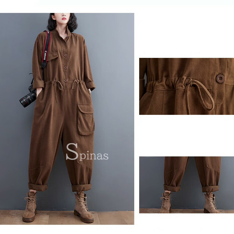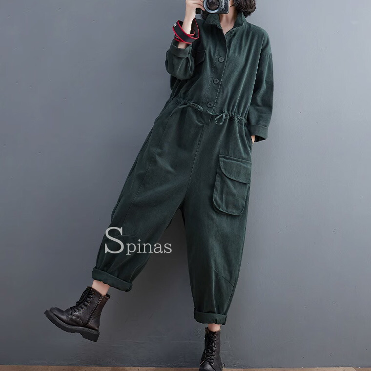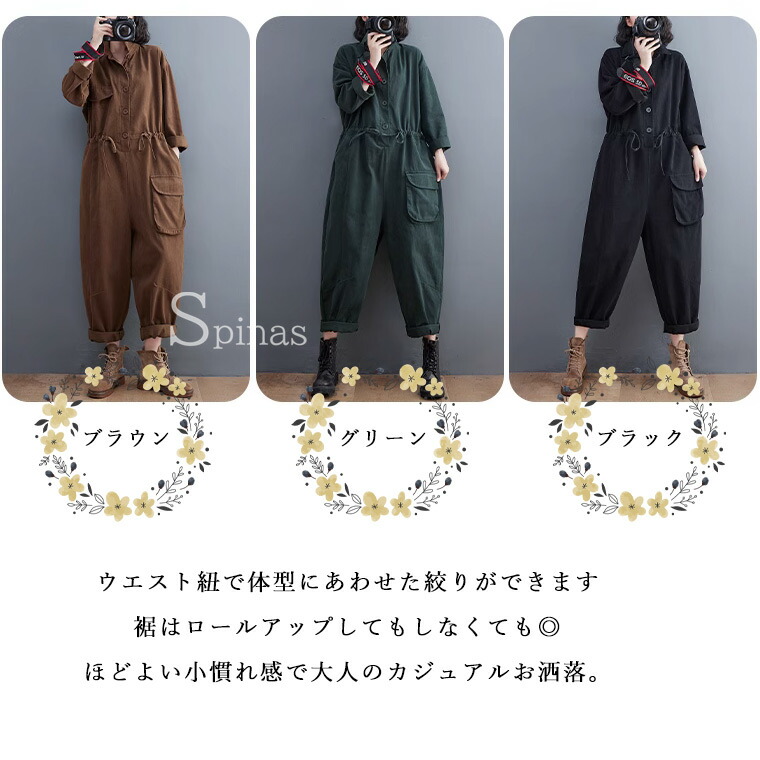 ウエスト紐が美シルエットのポイント 3 オールインワン サロペット 続々入荷中 グリーン ブラック ブラウン L(M-L相当) XL 2XL