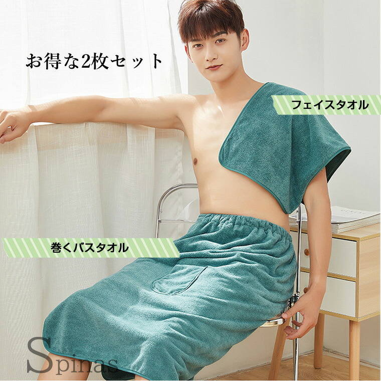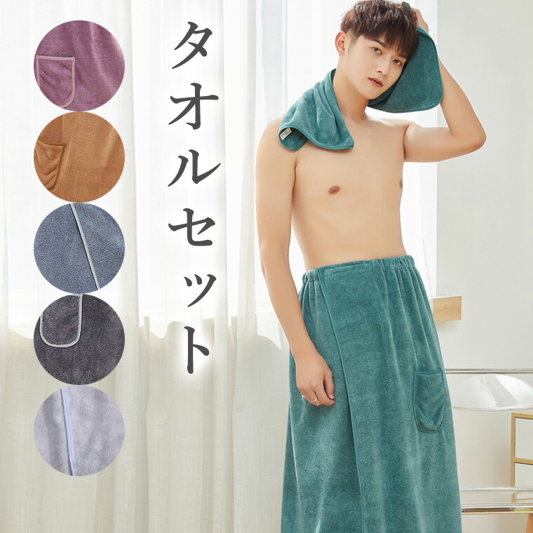 2点セット ラップタオル&フェイスタオ ブルー グレー グリーン パープル ブラウン