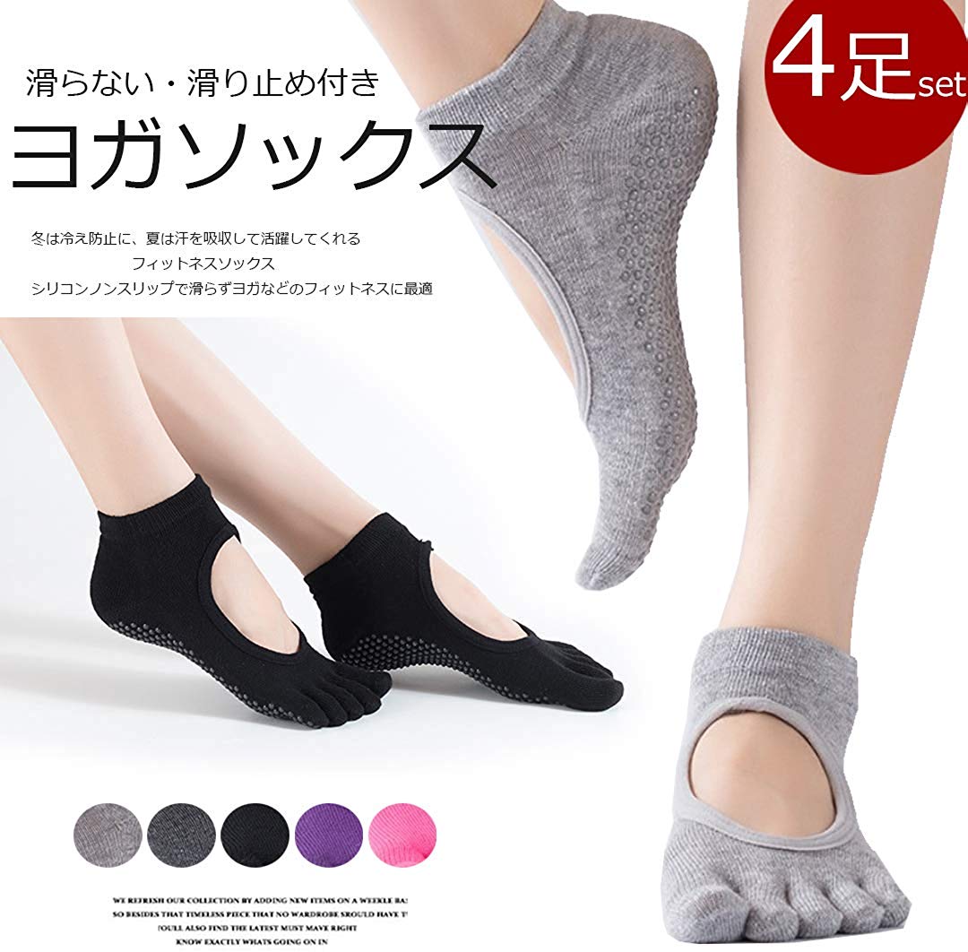 4足組 ヨガソックス 滑り止め 5本指 アウトドア ウェア レディースウェア 靴下 通販 Aセット Bセット Cセット Dセット Eセット