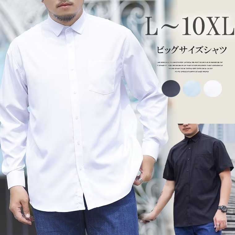 ぽちゃり体型のカバーができる 大きいサ メンズファッション 超目玉商品 L XL 2XL 3XL 4XL 5XL 6XL 7XL 8XL 9XL 10XL ホワイト(長袖) ブラック(長袖) ブルー(長袖) ホワイト(半袖) ブラック(半袖) ブルー半袖)