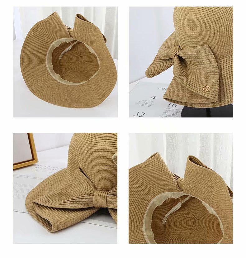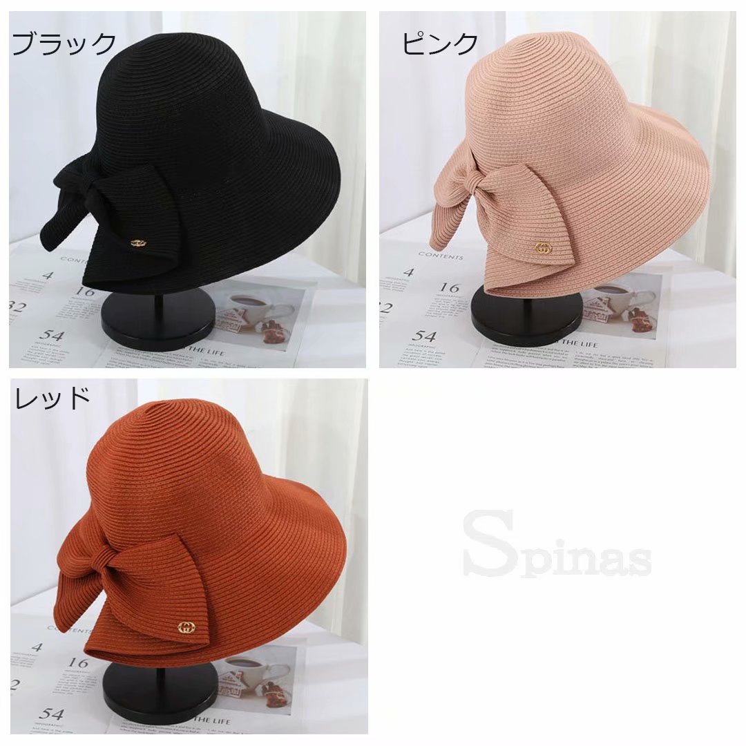 大きめリボンがポイント 麦わら ハット 帽子 レディース帽子 麦わら帽子 続々入荷中 ベージュ ライトブラウン グレー ダークグレー ブラック ピンク レッド