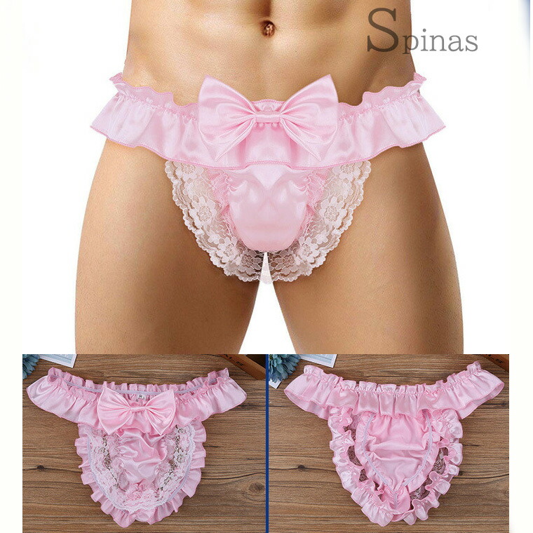 ふりふりフリルと大きなリボン レース メンズ インナー 下着 ブリーフ 新作 M L XL ブラック ピンク ネイビー ホワイト ワインレッド パープル