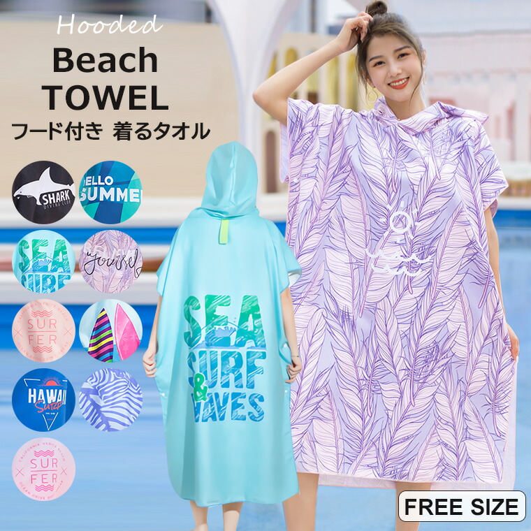 ビーチタオル フード付き 着るタオル 日用品雑貨 文房具 手芸 早い者勝ち ブラック ライトブルー ピンク ブルー グラデーションピンク ボタニカルグリーン ボタニカルピンク サーフボード ゼブラ