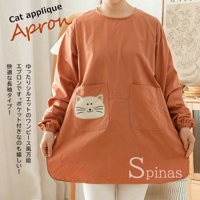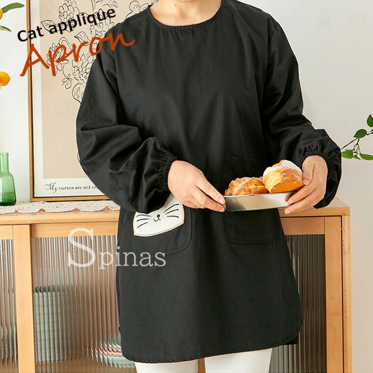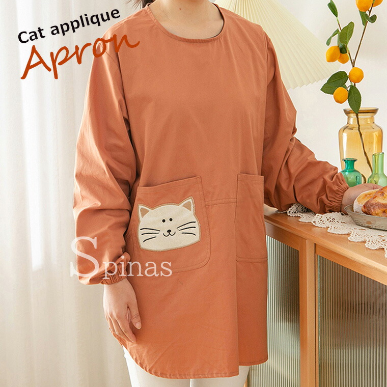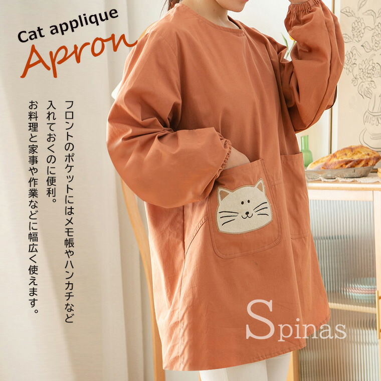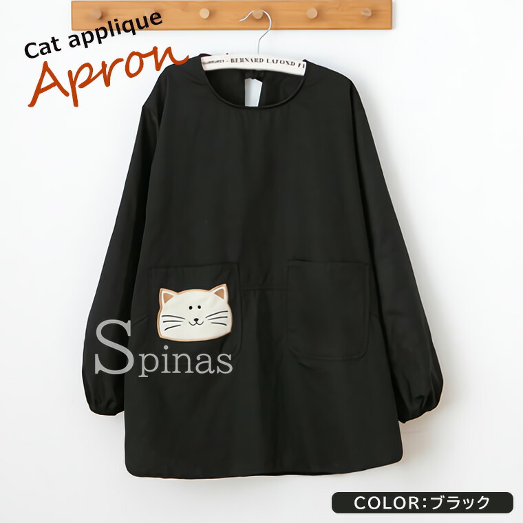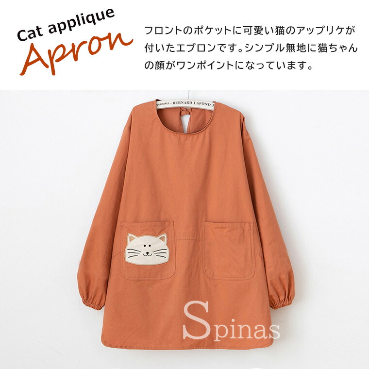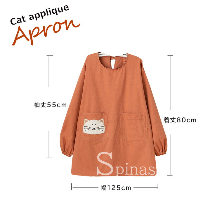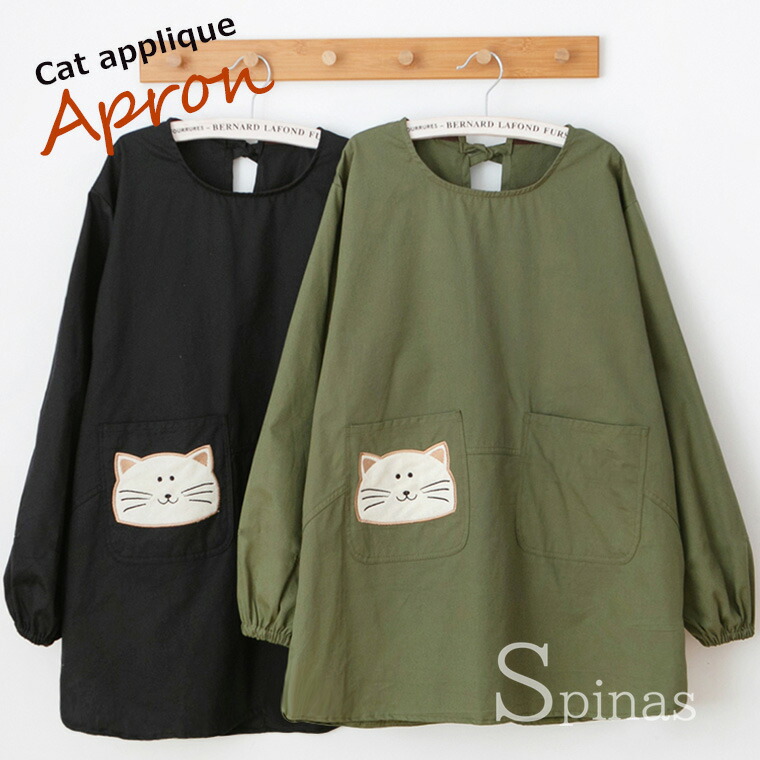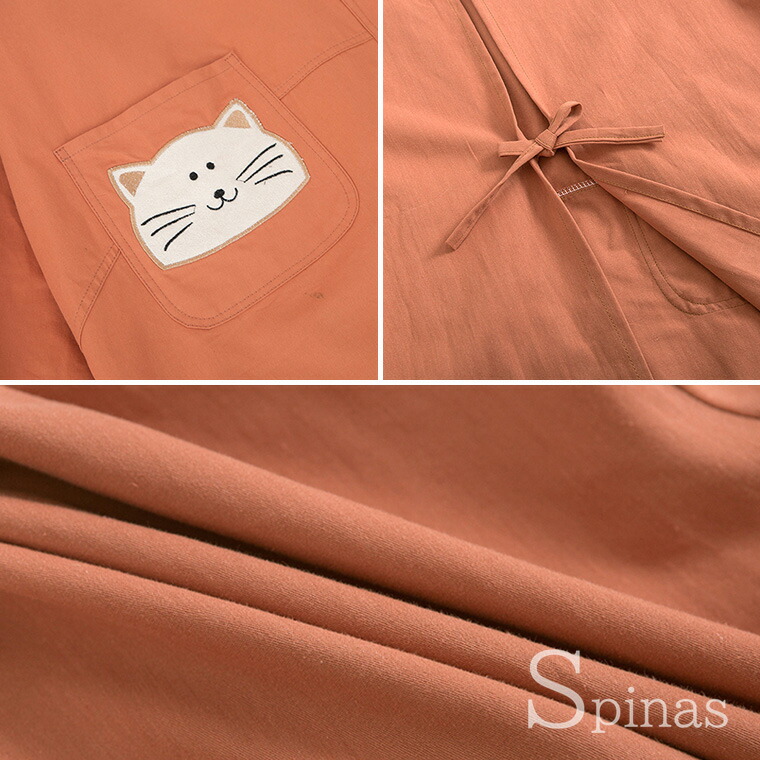 エプロン かっぽう着 80cm丈 猫の 配膳用品 キッチンファブリック エプロン 三角巾 割烹着 スモック 超目玉商品 オレンジ ブラック グリーン