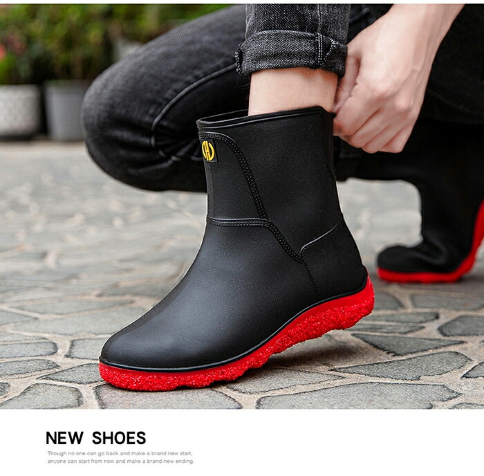 日常使い、アウトドアシーンでも大活躍 メンズ靴 レインシューズ 長靴 新登場! ブラック ブラック×レッド グリーン ネイビー 39(24.5cm) 40(25.0cm) 41(25.5cm) 42(26.0cm) 43(26.5cm) 44(27.0cm) 45(27.5cm)