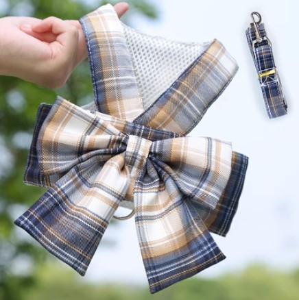 犬用ハーネスリードで日々の散歩をオシャレに!選べる2種類 ワンピース ベスト チェック柄 犬服 犬ハーネス ハーネス付き服 jk リード 小型犬 中型犬 犬ハーネスリードセット リボンハーネス