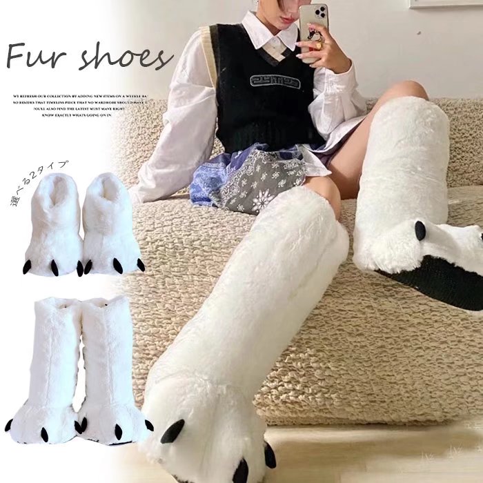 足をしっかりと包み込んでくれる!選べる2タイプ エコファー ルームブーツ 爪付き 起毛 ファー ルームシューズ 室内用 シューズ 動物 ぬいぐるみ あったかスリッパ コスプレ イベント 発表会 演劇