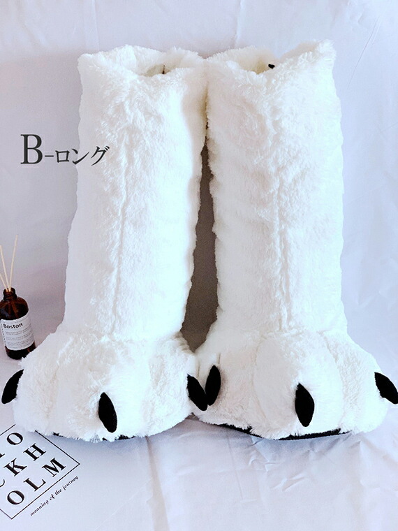 足をしっかりと包み込んでくれる 選べる2タイプ エコファー ルームブーツ 爪付き 起毛 ファー ルームシューズ 室内用 シューズ 動物 ぬいぐるみ あったかスリッパ イベント 発表会 演劇 コスプレ