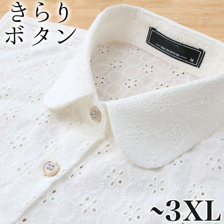 きらりボタン 白ブラウス3タイプ 付け バッグ 小物 ブランド雑貨 超目玉商品 M-L XL-2XL 2XL-3XL 丸襟 角襟 立襟