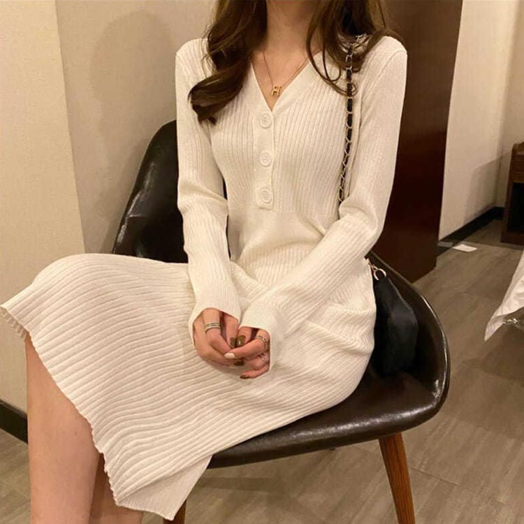 ニットワンピース ロング レディース ワンピース 新登場! ブラック アイボリー ホワイト ワインレッド S M L XL