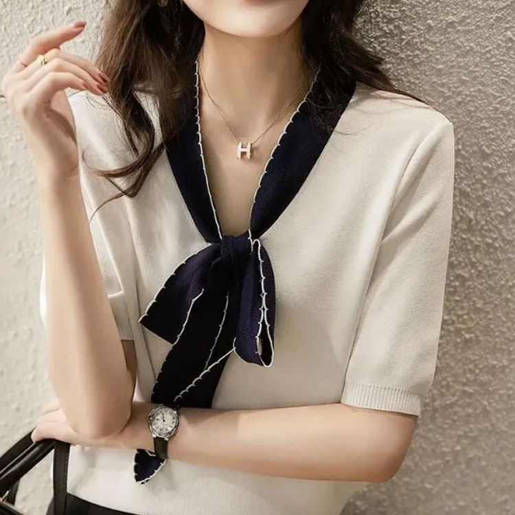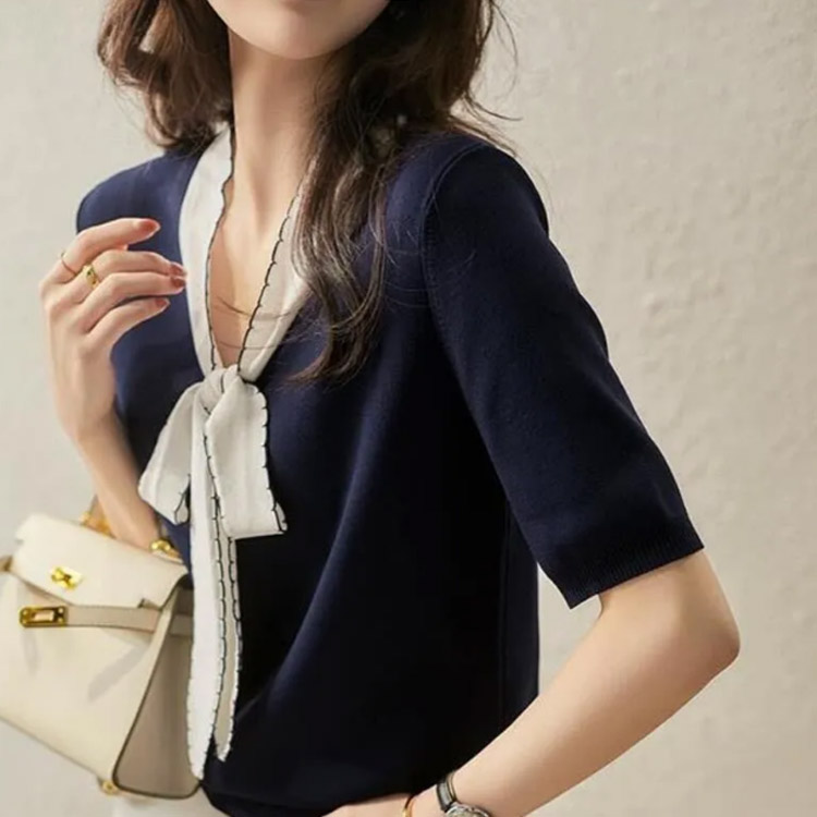 サマーニット 半袖 レディース 5分袖 トップス ニット セーター その他 人気 ホワイト ネイビー S M L XL