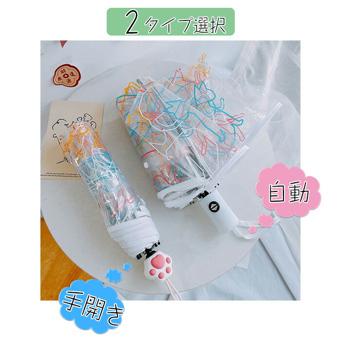 透明 猫柄 折りたたみ傘 かわいい 肉 傘 晴雨兼用傘 豊富な品揃え 手開き 自動開閉