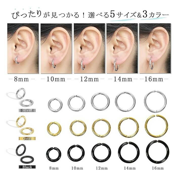 イヤリング メンズ フェイクピアス ノ レディースジュエリー アクセサリー ピアス 早い者勝ち シルバー ゴールド ブラック 8mm 10mm 12mm 14mm 16mm
