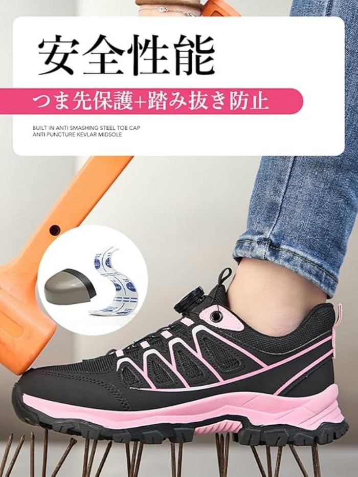 安全靴 レディース ダイヤル式 作業靴 ブラック グレー 35(内寸22.5cm) 36(内寸23cm) 37(内寸23.5cm) 38(内寸24cm) 39(内寸24.5cm) 40(内寸25cm) 41(内寸25.5cm)