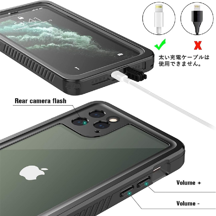 防水ケースとは思えないスリム!ケースを装着したまま充電をすることも可能です。