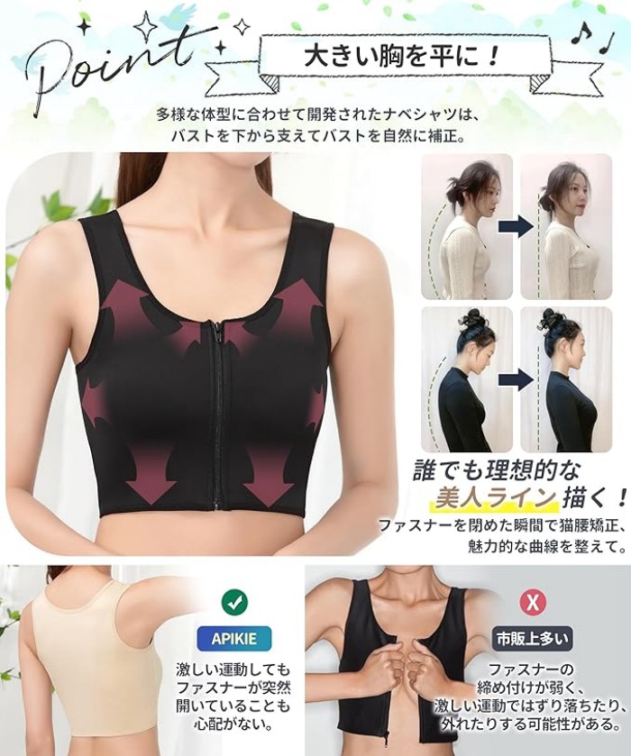 ナベシャツ 胸が小さく見せるブラ Cか インナー 下着 ナイトウエア 特集 ブラック 肌色 ホワイト S M L XL 2XL