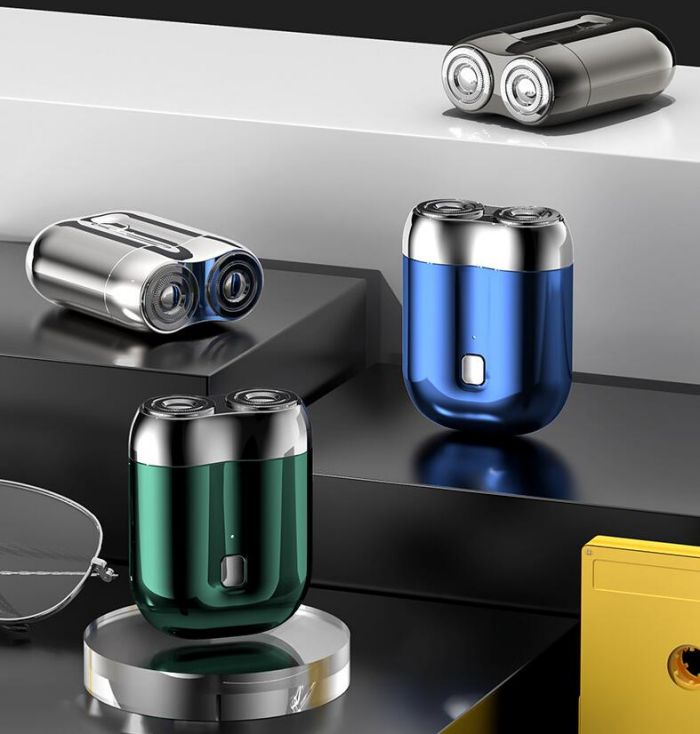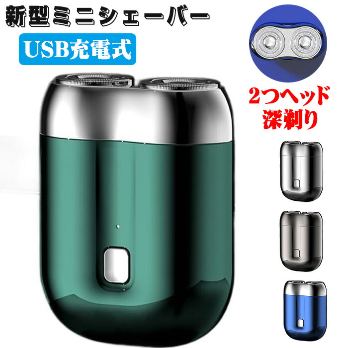 新型ミニダブルヘッド式電気シェーバー グリーン ブルー シルバー グレー