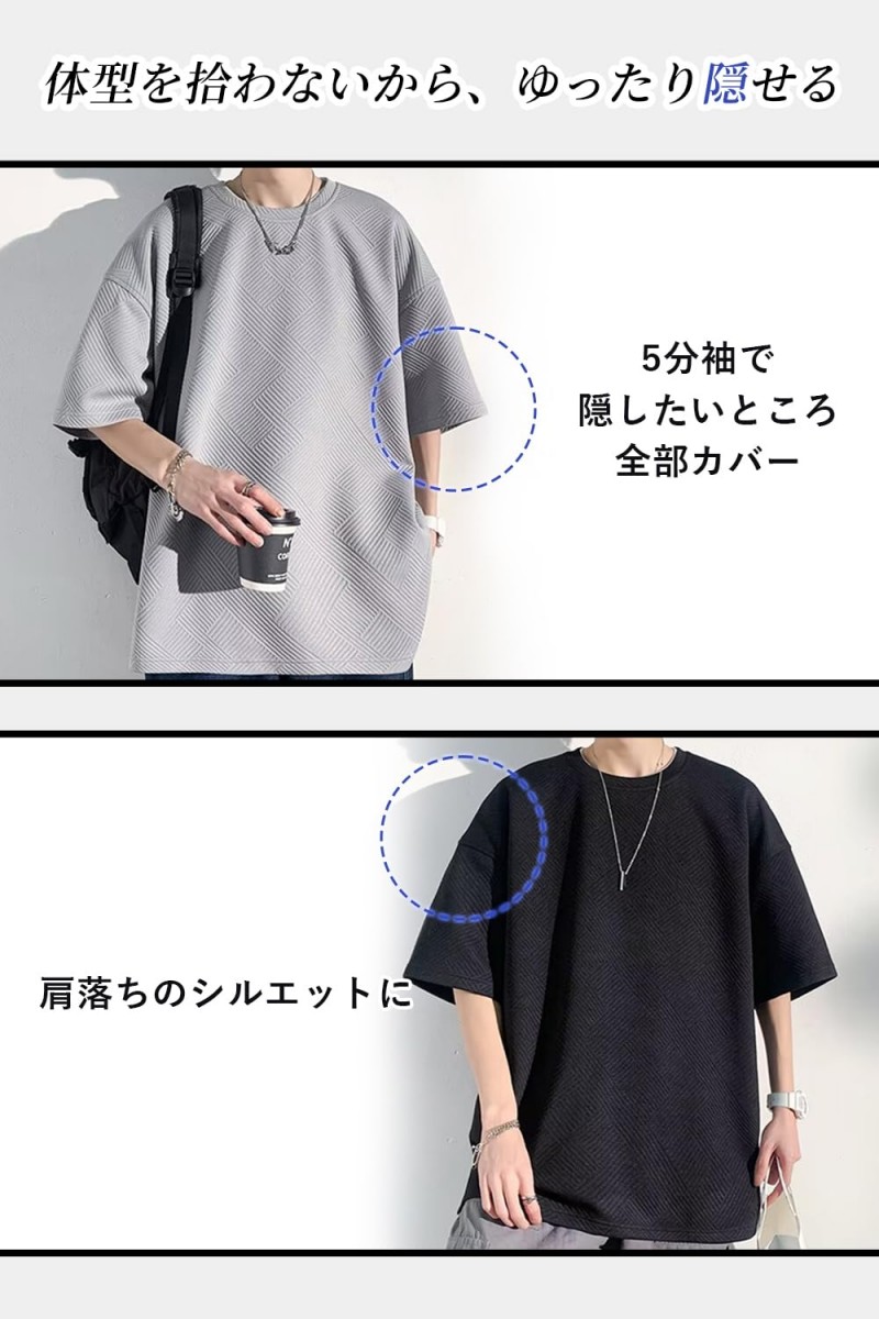 Tシャツ メンズ 半袖 5分袖 厚手 トップス Tシャツ カットソー 通販 ブラック ホワイト グレー M L XL 2XL 3XL 4XL 5XL