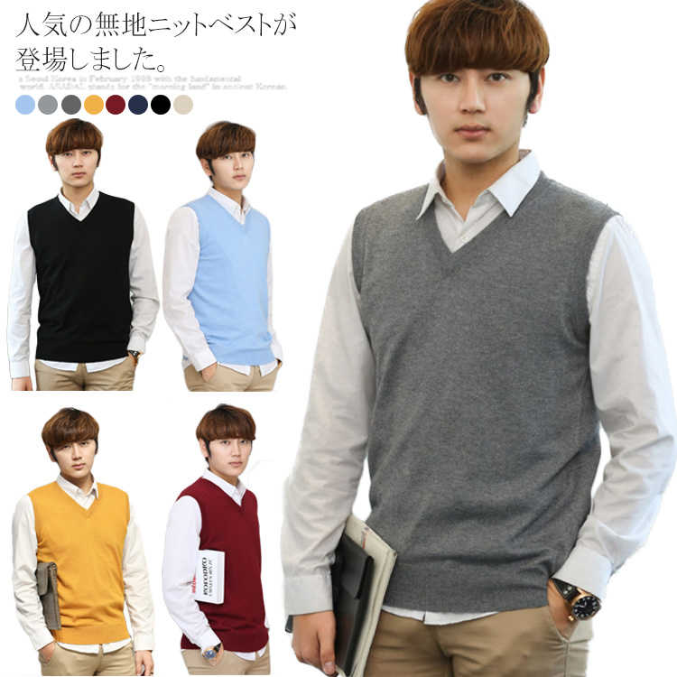 メンズ ベスト ノースリーブ ニット トップス ベスト ジレ 豊富 水色 ライトグレー グレー キャメル マスタード ワインレッド ネイビー ブラック S M L XL 2XL 3XL