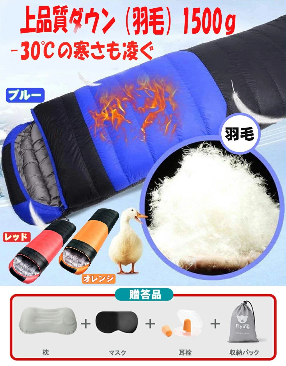 冬用 シュラフ 封筒型 防水保温 高級 スポーツ アウトドア 超目玉商品 レッド ブルー オレンジ