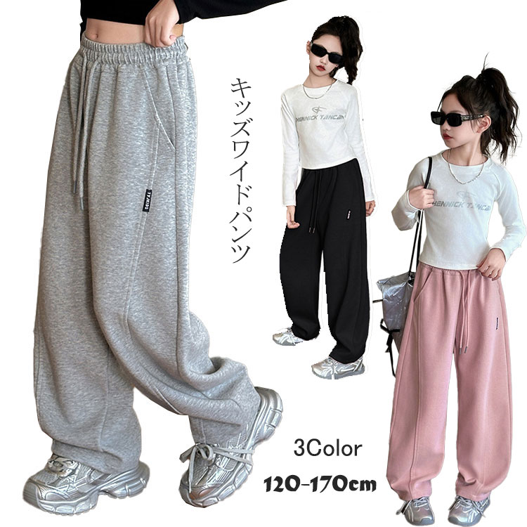 ワイドパンツ スウェットパンツ キッズ キッズ ボトムス パンツ 新作 グレー ピンク ブラック 120cm 130cm 140cm 150cm 160cm 170cm
