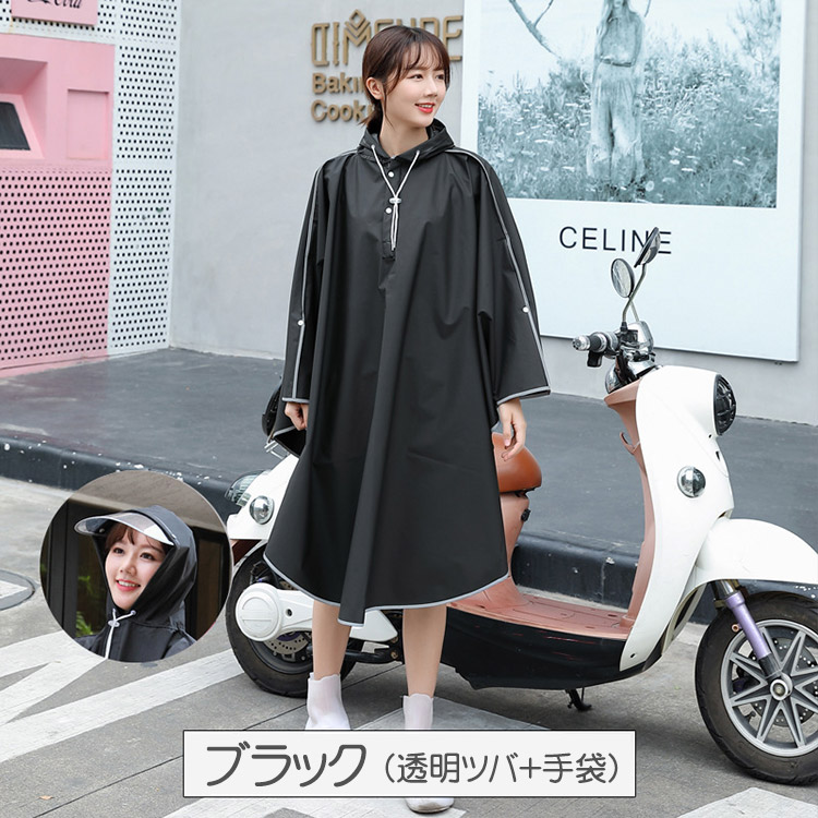 自転車 レインコート レディース メン アウトドア ウェア レインウェア レインポンチョ 超目玉商品 ブラック 半透明 L XL XXL XXXL