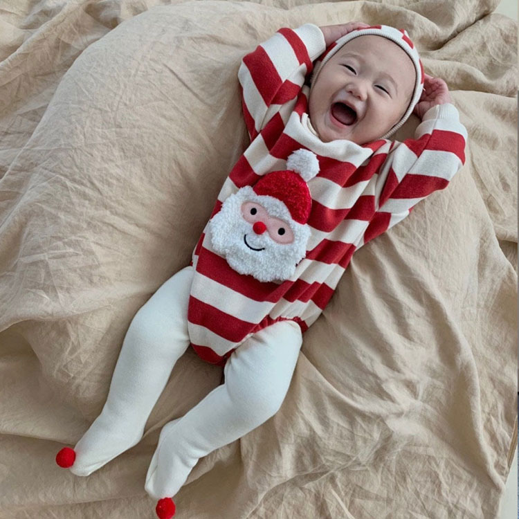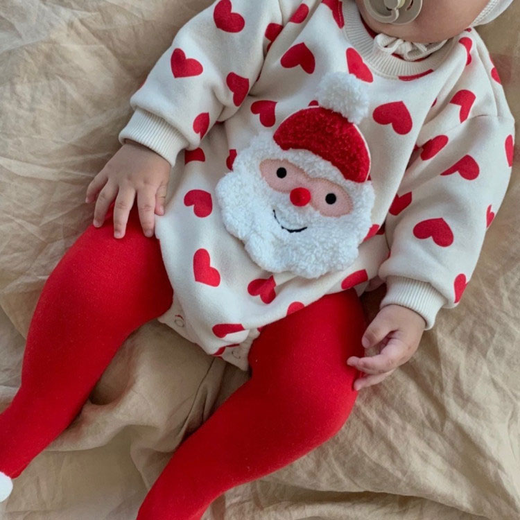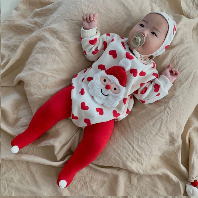 クリスマス衣装 ベビー サンタクロース ベビー ベビー服 ファッション カバーオール ロンパース 人気 ストライブ柄 ハート柄 66cm 73cm 80cm 90cm
