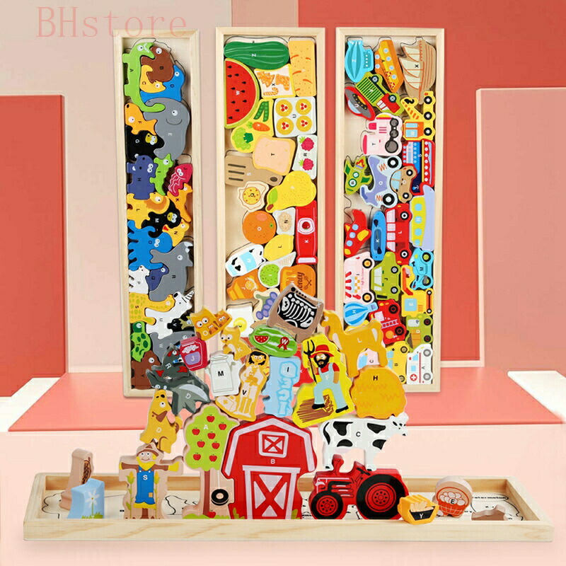 木製玩具 知育玩具 木のおもちゃ 木製 01(動物) 02(交通) 03(フルーツ) 04(農場)