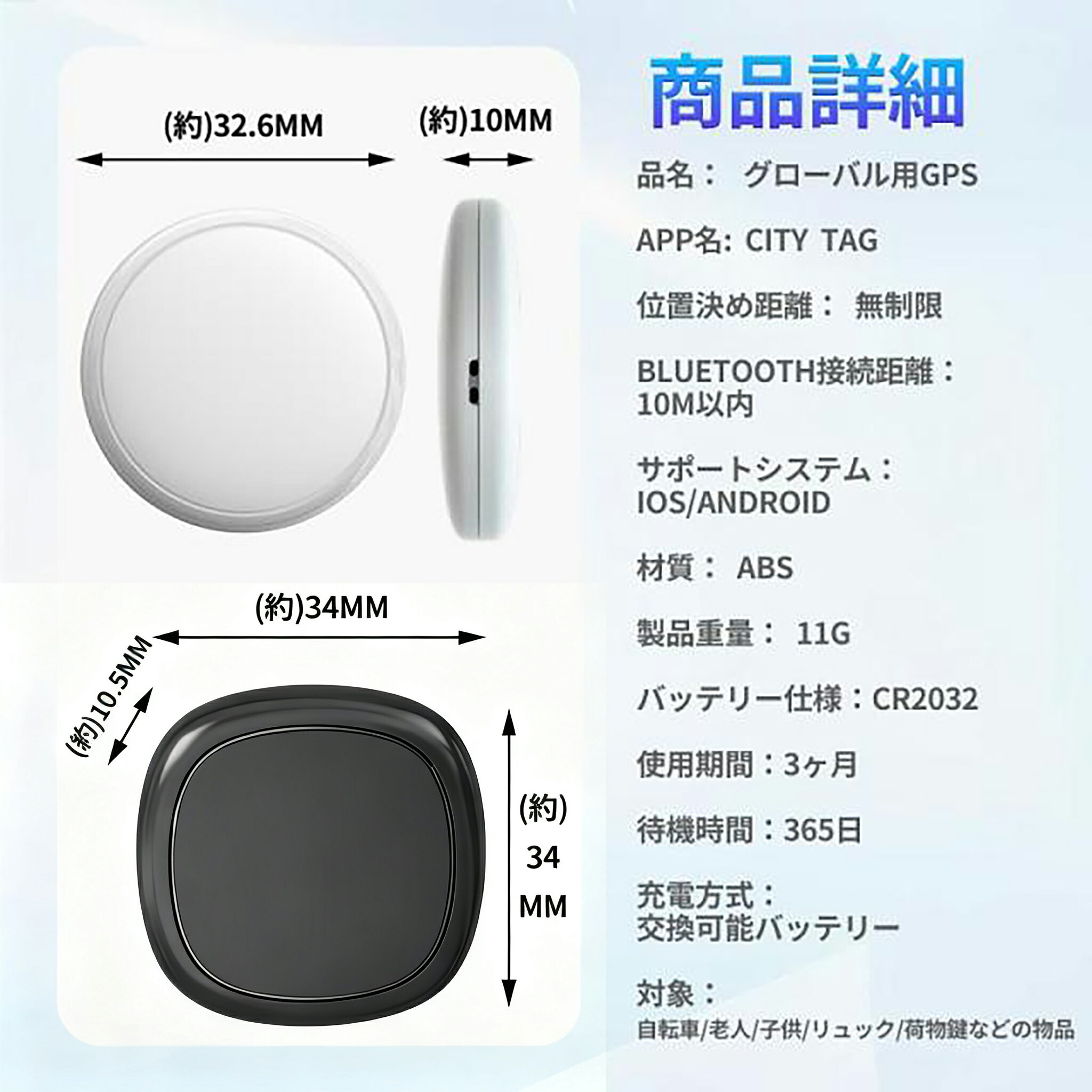 GPS発信機 GPS追跡 浮気調査 小 ブラック ホワイト 四角形 円形