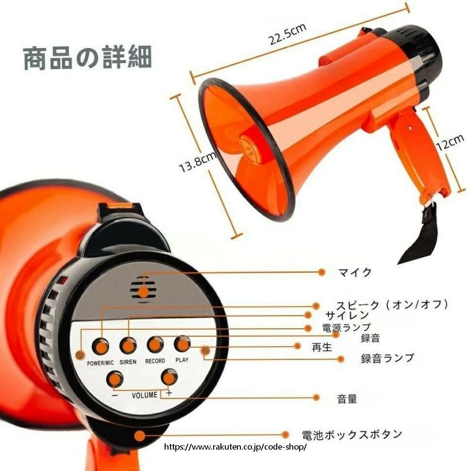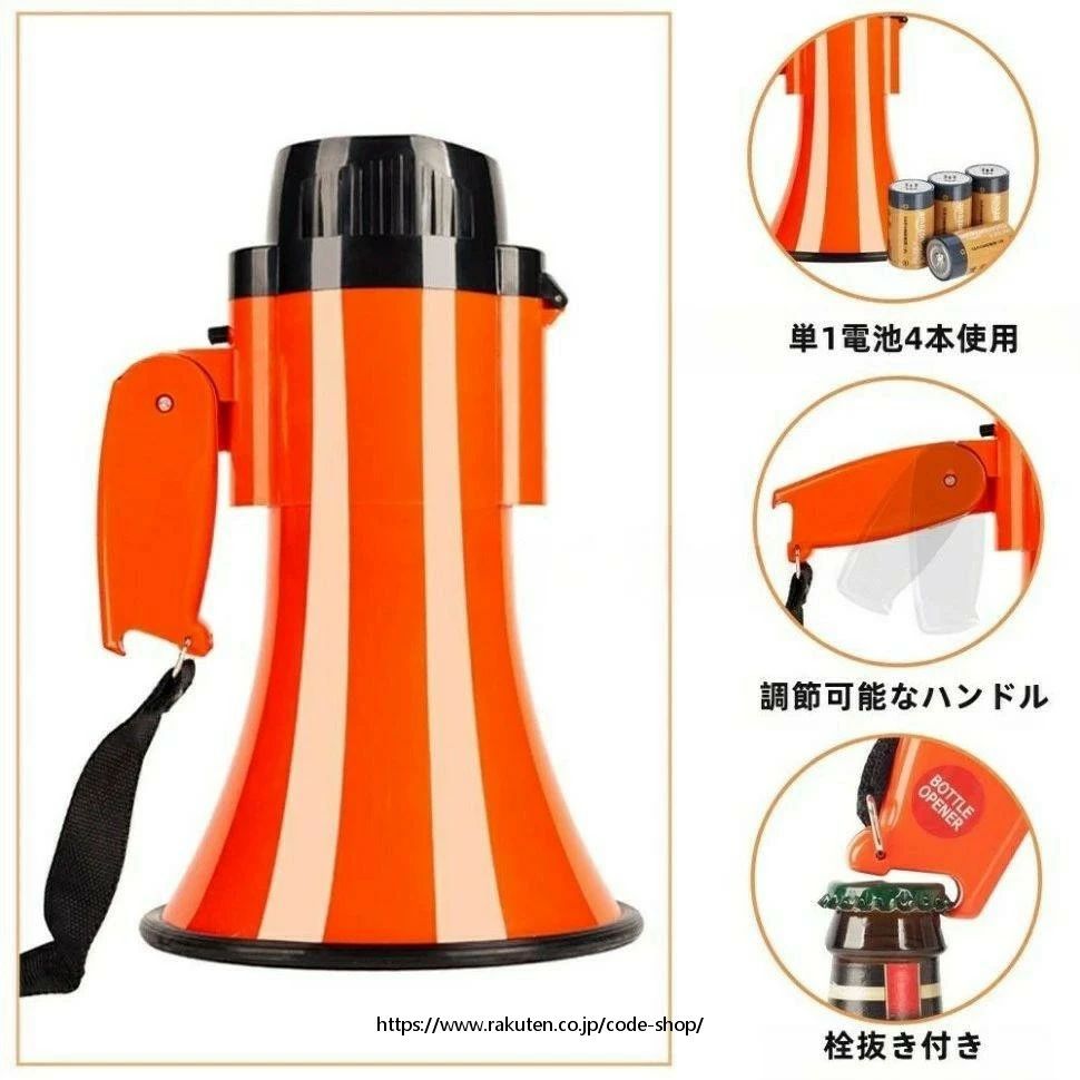 メガホン 拡声器 屋外用 30W ハン オレンジ ブルー ピンク グリーン パープル ブラック