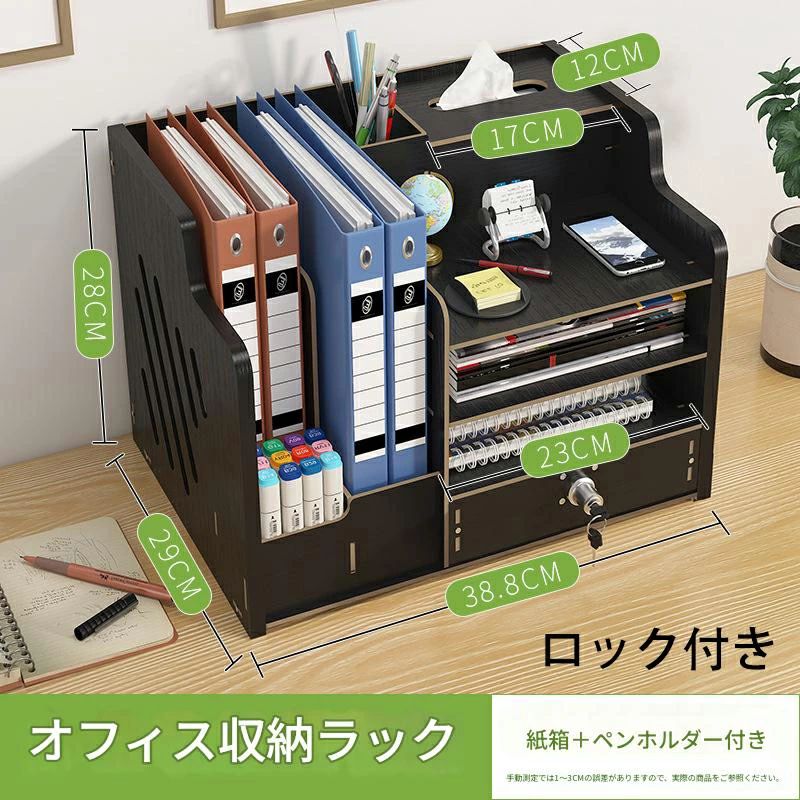 卓上収納ボックス 多機能 デスクオーガ ホワイト チェリーウッド ブライトブラック ロック付き ロックなし