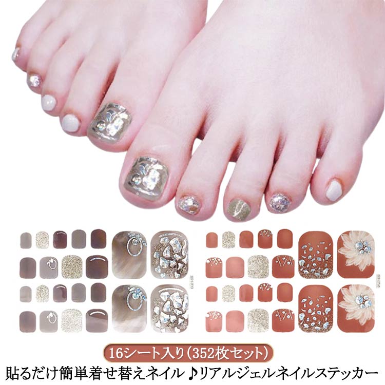 リアルジェルネイルステッカー ネイル 硬化 ネイルシール 貼るだけ ジェルネイルシール 16シート入り 352枚セット セルフネイル ネイルステッカー フット ジェルネイル 北欧