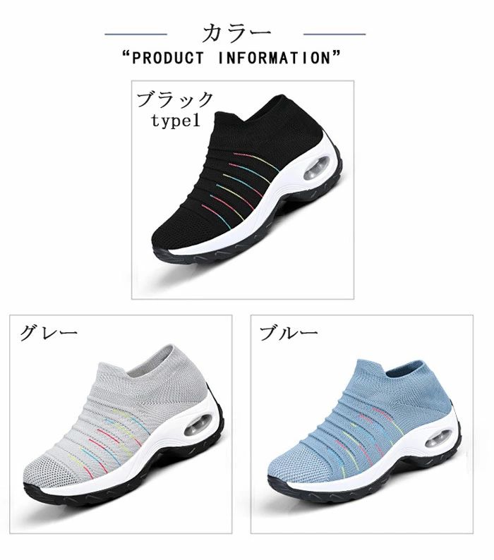 靴 メッシュ 紐なしスニーカー すけつ レディース靴 スニーカー 通販 ブラック type1 ブラック type2 ブルー グレー 35(内寸22.5cm) 36(内寸23cm) 37(内寸23.5cm) 38(内寸24cm) 39(内寸24.5cm) 40(内寸25cm) 41(内寸25.5cm) 42(内寸26cm)