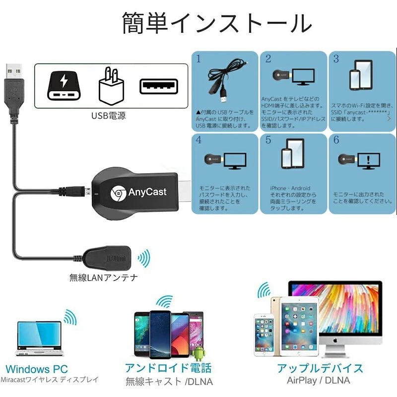 \超目玉商品/2025年 最新 アップグレード版 anycast 新品 クロームキャスト ミラーリング iphone ドングルレシーバー AbemaTV リモートワーク スマホ 動画 テレビで見 4k