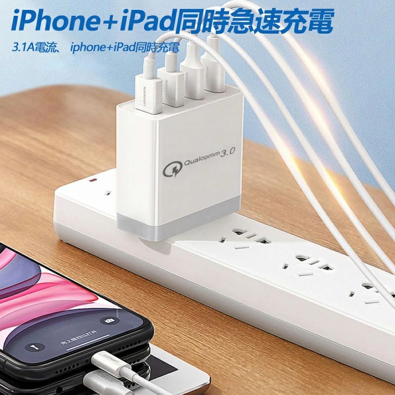 \超目玉商品/ACアダプター 急速 USB 充電器 4ポート 同時充電 4口 チャージャー コンセント QC3.0 iPhone Android スマホ USBアダプタ Galaxy Xpe 2.4A